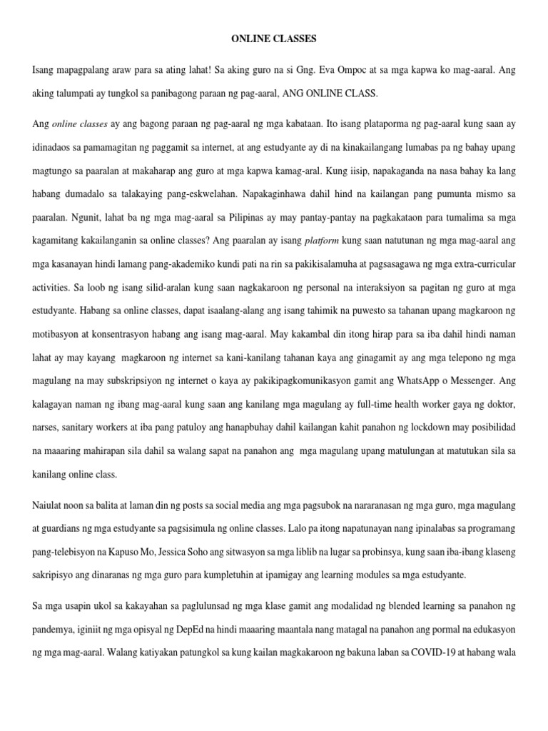 Sanaysay Tungkol Sa Online Class At Modular