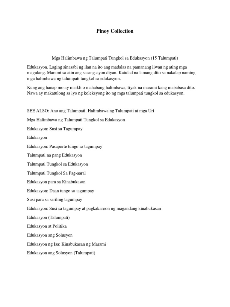 Pa help naman po. 2017-12-12 Mga Halimbawa ng Talumpati Tungkol sa Edukasyon 15 Talumpati Edukasyon. Ang kumperensya ay inisponsor ng Anak ng Bayan party list at ng College Editors Guild of the Philippines.