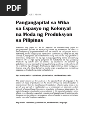Pangangapital Sa Wika Sa Espasyo Ng Kolonyal Na Moda Ng Produksyon Sa Pilipinas